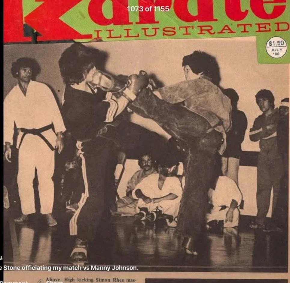 So I sent a picture to Mr. Mike Stone. said, Mr. Stone, you were referring my fight and I'm kicking this guy in the face and Karate Illustrated Magazine caught this picture and I've been wanting to share this picture with you. And so like in May of this year, we were both in England for UK martial art show.